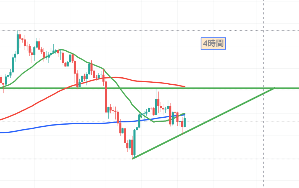 4時間足で確認すると、下目線ですが、徐々に安値が切り上がってきている感じですね。