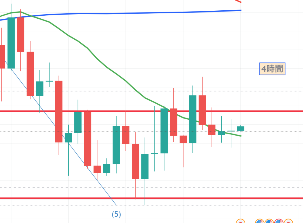 ダウ理論的には、上目線ですが、日足が下目線なので、1時間と4時間の買いの勢力しか期待できないので、1時間足または、15分足で利食いを検討したいですね。