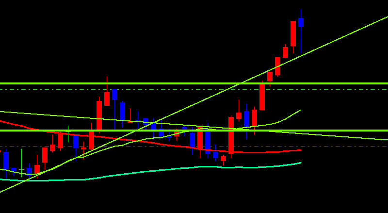 日本市場がクローズしてから、上へのブレイクがありましたね。手前で押し目買いでエントリーしました。