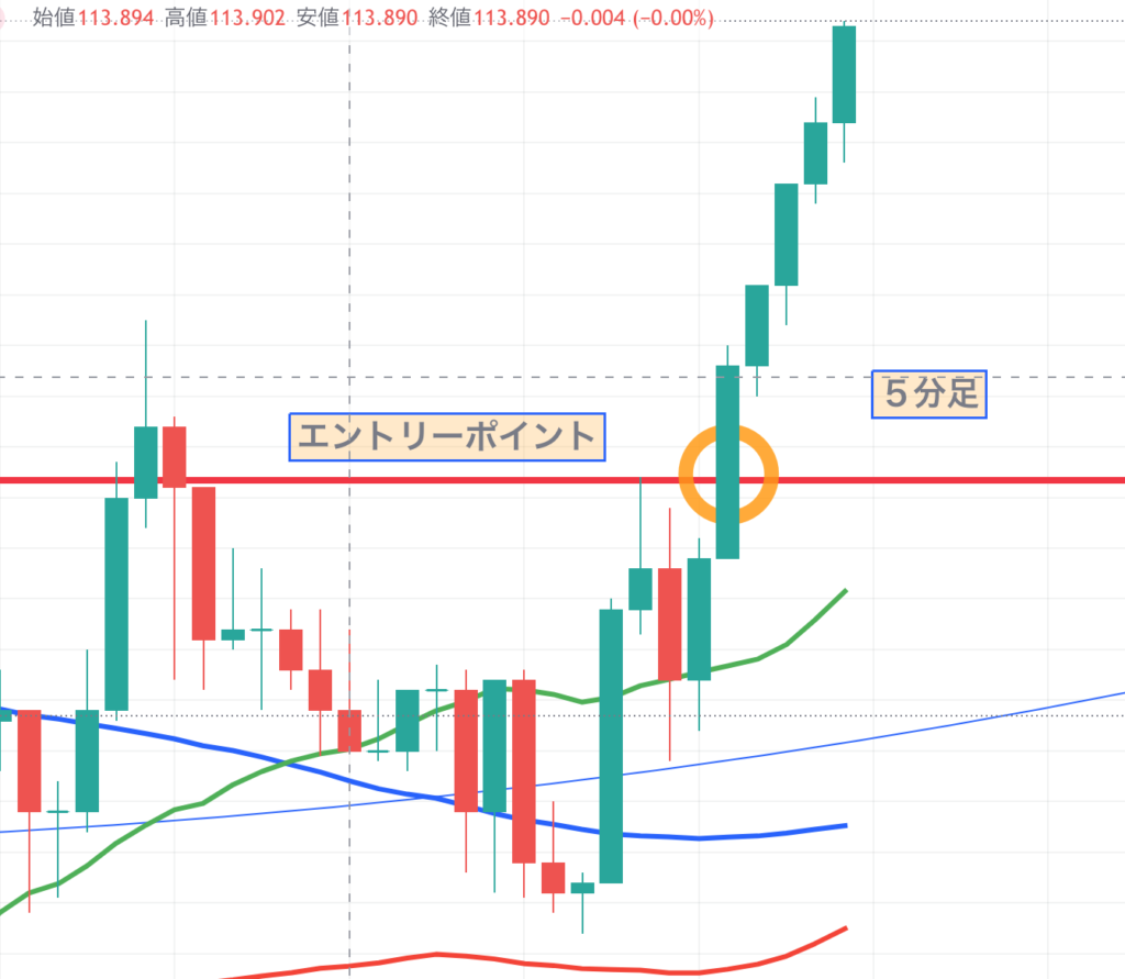 損切りポイント 113.87